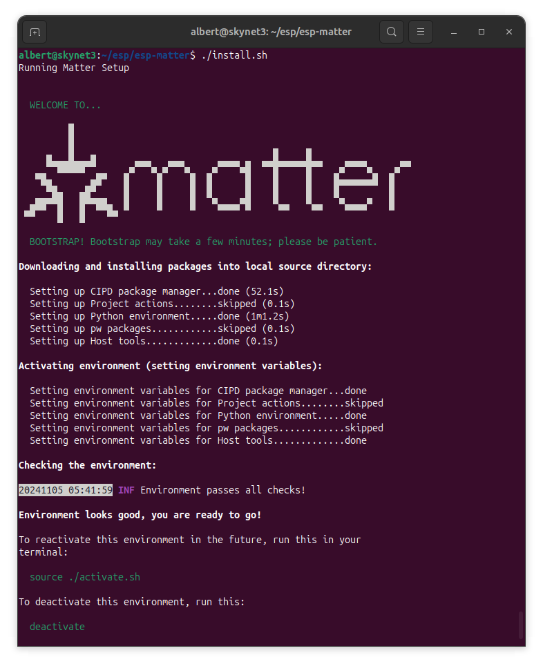 Now, running get_matter will set up or refresh the ESP-Matter environment in any terminal session.