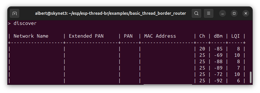 744dbdfffe63f5c8).eui64Bring the IPv6 interface up, enable the Thread Joiner role, and start the Thread protocol:
