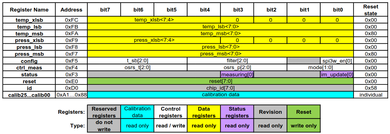 The BMP280 code is designed according to the specifications outlined in the BST-BMP280-DS001-26 datasheet. Communication with the sensor is performed through read and write operations on its 8-bit registers.